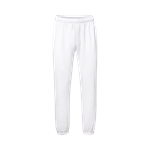 8 oz. 60/40 cotton/polyester fleece. Covered elastic cuffs and waistband with internal matching drawcord. Straight leg.