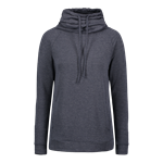 6.7 oz., 63/33/4 polyester/rayon/spandex faux cashmere. Funnel neck with matching drawstrings. Side pockets. Classic fit.