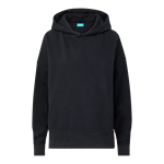 6.8oz 80/20 cotton/polyester French terry. Drop shoulder seam. Crochet detail at side seam slits. Rib knit cuffs and hem band. No drawcord. Boxy fit.
