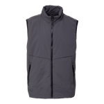100% coated nylon shell. 100% polyester lining. Polyester fill. Stand collar. Exposed contrast plastic zipper at center front. Side zip pockets. Contrast elastic binding at armholes. Water resistant. Wind resistant. Classic fit.