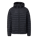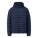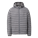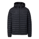 100% coated nylon shell. 100% polyester lining. Polyester fill with 550 - 570 fill power. Horizontal quilting design. Exposed nylon coil zipper at center front. Side zip pockets. Fixed hood with bungee cord and stopper. Elastic cuffs. Water resistant. Classic fit.
